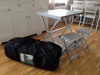 Stoler og bord.. og fortelt til bussen fra Just Kampers
