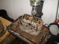 P1017231.jpg (99.04 KB. 733x550 - vist 406 ganger.) Etter det vart det litt arbeid på venstre blokkhalvdel,, eg ville ha ut den trakta nedi blokka, men eg klarte berre sovidt å svinge den sidevegs, umulig å dra ut.. so løysingen var litt varming med propanbrennar rundt blokka der den heng fast, etter det drog eg den fint ut:)