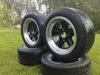 2 stk 9*15 med 225/50-15 "disse bygger ut ca 14 cm fra bremse trommel til felg kanten"