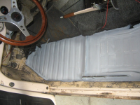 . Men nå er den kjørt inn i verkstedet og jeg har såvidt fått startet på den. Ribbet bilen innvendig på utskikk etter skjult rust, fant heldigvis bare litt god overflate rust. Har også tatt av skjermene samt motorluke og lagt disse til side for pussing,sparkling,grunning,lakk.