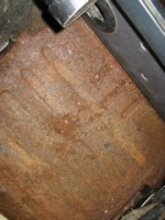 Synes det har vært ett skritt frem og to tilbake med bilen den siste uka. Har jobbet med å skrape og pusse rent undersiden av gulvet. Og det så jo så bra ut. Jeg klarte kun å se et hull på størrelse med ei knappenål. Men ved nærmere undersøkelser under teppene inne i bilen, så må nukk deler av gulvet byttes.  Trist