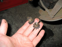 Skulle også justere viftereima, da denne var litt slakk. Men på drivhjulet på dynamoen (vet at denne egentlig heter noe annet) hadde ikke flere shims å fjerne. Reima så ganske fin ut, så det har kanskje blitt satt på ei reim som har vært litt for stor. Men det var ikke noe stort problem, jeg hadde jo ei ny viftereim liggende på lager. Men denne viste seg å være for kort. Selv med alle shimsene på plass mellom drivhjulhalvdelene, var reima stram som en pianostreng. Jeg var pent nødt til å sette den gamle på igjen.