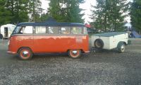 Jepp, fra Düsseldorf i Tyskland! Med 2 hyggelige karer om bord og en litt sliten henger bak.