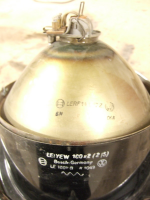 Kromen ser fin ut, reflektoren uten korrosjon, glasset ok samt pæreholder med pære følger med.