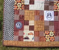 Teppet er ubrukt. Quiltet med bomullsvatt, og bakstykke i bomull.