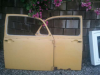 VW bobledører selges til 200 for begge. Dørene har vært lagret innendørs men har fått litt rust nederst noen polasser. Dørene har innmat men mangler vinduer. Jeg kjøpte dørene for at de skulle passe på min 1302 men har aldri prøvd de.