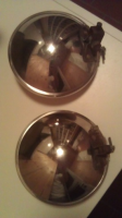 De er hele og pene. Mangler pærer og ledninger og det ene festet er litt bøyd. Skal være en kurant sak å få til å skinne igjen;)