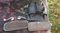 Dør håndtak og vindussveiv med profil noe nupper i krommen. Hanskeromslokk SOLGT. og høytalergitter til oval med rust. deksel til motor