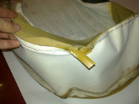 Ny bestilling av skai: 1,5x10 meter hvit vinyl (flammehemmende!!) ble bestilt fra en stor leverandør i Tyskland, og kantbånd/piping fra en sjappe i Mississippi i USA (så turkis ut, var grønn - jaja! Får leve med grønn!).