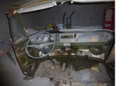 Kappet front til VW buss 1968 mod. Har ratt og rattstamme. Viskermotor, styresnekke, speedometer instr panel, håndbrekk og pedal mekanisme. + div. Lite rust.