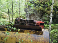 er eit slags (gamalt?) mek.verkstad eller lastebilverkstad der. mykje stål og ein halv scania vabis utante verkstaden, men over vegen og ned i røysa låg da diverse morro Glad