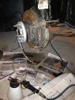 Lufting av bremser er bare bare med Volvo 240 to krets calipere. Ikke mindre enn tre luftenipler pr caliper. Hadde heldigvis investert i en vakumlufter fra BilXtra Gjøvik, så der var bare og sette i gang kompressoren og kikke på. Har liten tank og liten kompressor, så må nok etterlufte litt senere også.