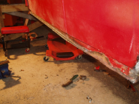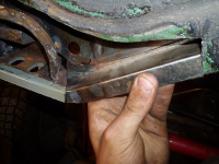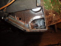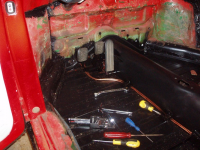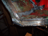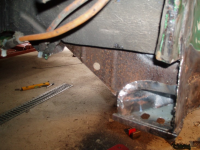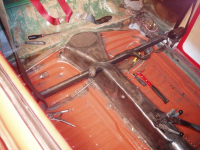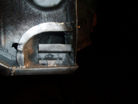 Mens eg var så godt igang fekk eg krabba under bilen att og sagd ut mesteparten av kanalbotnen her på venstresida og! Littegrann mindre rust her enn på andre sida... men her eksisterte ikkje nokon av platene frammi hjørna!