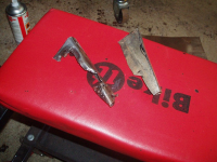 Ny og gammal stoppeplata for pedalane..hadde masse bal med dei pedalane (tips: ALDRI monter pedalsettet ETTER att karosseriet er på)