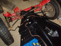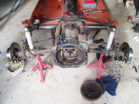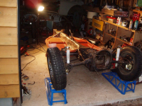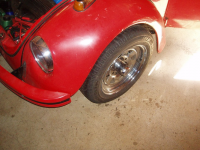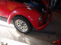 Tyttebæret kom seg ivertfall til SCC, har nokon bilder frå turen bort.. Ganske tidleg måtte det settast på orginalhjul framme, pga subbing.. Altfor breide hjul med senkespindlane påplass.