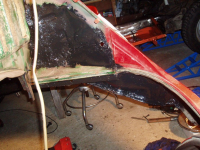 Karosserikittet frå Gasolin er ein bra investering! Her vart det kitta over mykje av sveiseområda i bakkant