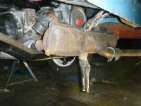 effektanlegget passa ikkje vs bjelken so eg måtte bruka eit orginalanlegg. eg hadde ingenting som passa til denne motoren, so då måtte da tilpassast noko.. kappa eit anlegg i to og korta da inn til bredden stemte, men sjekk passformen mot varmepotta