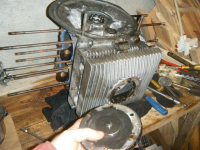 Etter eit sinnsjukt slit er sylindarane frie frå blokka og demontert på oljelokket låg da eit tjukt lag med oljetjøra likt da eg finn på motorar som har stått i 15-20 år. ??