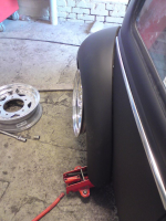 Prøving av di nye felga, for å se om di gikk innenfor skjermene  Gråter må enten bredde eller valse litt her gitt