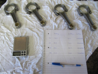 Det har pågått litt kosearbeid i verkstedet i dag. Vektjustering av råder og stempler. Jeg mottok nye AA Performance-råder her om dagen. Nå har jeg både AA Performance syl.- og stempelsett og råder. Sikkert mye ymse å si om dette merket der ute. Jeg har hverken prøvd det før eller undersøkt noe særlig om tidligere erfaring folket måtte ha. Hvis noen har hatt ubehageligheter ifm. dette merket så si gjerne ifra. Rådene ble kjøpt på kokoparts (forhandler av AA Performance) på eBay, og virker fine i kvaliteten. De er i std. I-profil-utførelse og har std. lengde. ARP-bolter er selvsagt et av argumentene for utgiften. Disse kommer levert som "matched set" - Vel vel, det får vi nå se nermere på... Råder til 99$ bør ikke være perfekte... Jeg har tidligere gått til innkjøp av en relativt billig vekt som veier med 0,1g-nøyaktighet. 10$ og free shipping på eBay - Skeptisk ennå?  Jeg tok to med det samme, og utrolig nok, så viste de den samme vekten med samme testobjekt, på 10-delen.