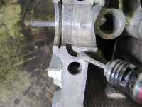 Siden jeg kommer til å ha en del høyere oljetrykk enn en std.-motor, vil jeg modifisere returkanalene fra kammen og bakre rammelager litt. Økt oljetrykk vil mate mer olje igjennom oljegalleriene over samme tid. Mao. bør returpotensialet forberes litt for å være på den sikre siden. Denne moden har jeg gjort på flere motorer, og det fungerer bra! Jeg tar fresen og friserer opp tverrsnittet litt på de to returkanalene etter bredden på fresehodet.
