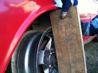 Perfekt.. Ellers fik jeg justeret bagbremserne ganske likt i begge sider, og det var tiltrengt!  Jeg havde vist ikke tænkt over at de skal justeres efter at have været brugt rigtigt et par gange.. Reservefelgen var endnu engang i aktion og denne gang med lidt hjælp  Men bliver vist ganske tight med en tomme bredere felg