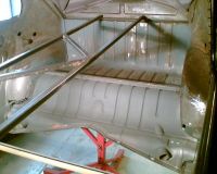 Her hopper jeg litt lenger frem. Eneste som blir brukt av reprodeler på bilen er kanaler, bunn av reservehjulsbrønnen og nedre del av A-stolpen. Hvis jeg ikke husker helt feil gikk det vel med litt reproblikk i bunnen av B-stolpene også. Resten er restaurert blikk fra ulike donorer.