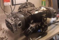 Ble en tur i garasjen i går også og da ble longblokka ferdig, inklusive vippestell. Ventiler er justert og alt ser bra ut. Jeg har tatt en sjefsavgjørelse, og kommer til å kjøre et mye enklere oljesystem, så da trenger jeg ikke doghouse-leamikket mitt, og slipper også disse slangene som gikk gjennom motorrommet og inn i viftehuset for å kople inn T1-kjøleren. Så da kunne jeg finne frem et 34-hk viftehus som ikke er moddet noe særlig, og alt ser ut til å passe som det skal:
