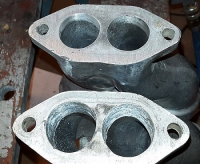 Fikk satt av et par timer i garasjen i dag, og det var deilig  Begynte med å match-porte innsuga. Portene i toppene er ca 34mm i diameter, mens innsuga var ca 30-31mm, så da fyra jeg opp den roterende fila, og resultatet ble noe sånt:
