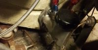 Ble jammen en tur i garasjen i dag også gitt, og da fikk jeg gjort noe jeg har gruet meg til en stund, men nå er clutch-pumpa på plass. Dvs, jeg skal ta den ut og få lagt på litt rustbeskyttelse i hullene, men grovjobben er gjort. Må få på noen klammer på slanger etc under tanken også. Blir trangt under der etter hvert med filter, pumpe, tur-, returbensinrør og nå clutchpumpe. Må passe på at ikke noe tar i styrestag, men det ser ok ut så langt.