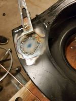 Junior har bursdag i dag og når jeg spurte hva han ville finne på ønsker han å gå ut i garasjen og skru litt  Så da kikket vi litt mer på dette med reimhjul og hvis jeg starter opp uten tørrsump så kan jeg bruke std størrelse på reimhjulet. Måtte sjekke offset da jeg måtte shimse ut mye med det oppsettet jeg kjørte i fjor, og dette ser mer riktig ut enn med det wbx-hjulet jeg brukte i fjor. Sliter fortsatt med å få bra finish på hammetslagslakken så kanskje det blir en annen løsning.