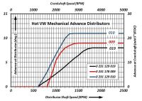 Dalland skriver jo også at det finnes flere kurver for de samme fordelerne, og det har jeg også sett at 009 normalt har et flatspot og full advance på 2500-3000.