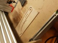 Første versjon av clutchpedal. Tok ca 3 min i cnc-routeren. Dette er mdf for å teste geometrien