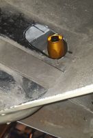 Den litt rustne bulken vi ser i overkant er merke etter at lyddemperen på CSP Python-anleggert har slått oppi, så det viser ca klaringen til eksosen. Øverst til høyre er bøylen på ventildekselet, og ved tommelen min ser vi så vidt eksosrøret ut fra syl #2. Det er med andre ord veldig liten plass, men jeg tror det skal gå bra slik den nå ligger, så da må jeg bare få laget en brakett til ventilen, og en masse slanger. Som man kan se, er det ikke lange stumpen som skal fra tanken og inn i ventilen.