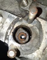 Ventilstammen sitter fast i styringa, og styringa har da jobbet seg ut av godset i toppen. Jeg har vel nevnt at jeg har hatt en "ventilklikkelyd" som ikke har gått helt bort ved justering, og dette kan jo ha en sammenheng. Så da får vi se om det er mulig å fikse (har både tig og fres) eller om jeg må lete litt dypere på kistebunnen og se meg om etter nye topper  Men for å få kjørt noen mil før vinteren, settes nå fokuset på å få denne inn, så får jeg jo testet om den er nogenlunde i orden før vi kjører på med overladning på den: