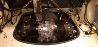 engine1.jpg (50.15 KB. 800x389 - vist 415 ganger.) Jeg krabbet under for å kople fra alle oljeslanger og tømme motoren for olje. Et par observasjoner: -Det hadde dryppet litt opå gulvet og det ser ut som det kom fra skjøten i eksosanlegget rett etter kollektoren... -Når jeg skrudde ut tappepluggen i bunn av motoren forventet jeg litt olje, men det kom ca 3 liter, noe som er nesten "normal" mengde i en wbx. -Skal sjekke mye det er igjen i tanken; jeg fylte på 6 liter. Så nå ser den slik ut, og forhåpentligvis får jeg tatt den ut i kveld: