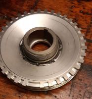 Flaks hvis det er samme størrelse Glad er til tørrsump reimhjul. 112 mm innvendig diameter og tenna på utsiden Blunker