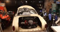 «Gutta holder på med et lite prosjekt med å trekke "gulvet" i motorrommet med sutak/sort vinyl også så de må få gjøre seg ferdige med»