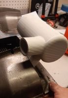 For å få innsugsrøret ut på riktig side av viftehuset, kan ikke høyre og venstre side være like, så nå jobber jeg med å lage en variant som skal passe på venstre siden.