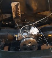 Det er en mengde ledninger og slanger til både bensin og vacuum som skal på plass, og siden jeg prøver å få minst mulig synlig fra utsiden, blir det mye fikling på baksiden av viftehuset