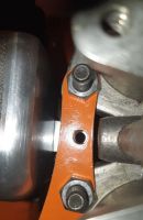 Sett litt skrått fra undersiden ser man både braketten på fuel railen, og den dreide avstands-biten: