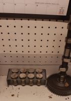 Så det første vi så på var denne "berømte" Hoover mod. Det går ut på å forlenge oljekanalen som går gjennom løfterboringene sånn at det kommer mer olje ut til toppene, også gjennom de bakerste lagerbukkene til kammen. Søk opp Hoover mod på google, så finner man mye bedre forklaringer og et par veldig illustrerende videoer om emnet. Det sies at oljetempen vil gå noe opp, men tempen i toppene går ned, siden dette fører til bedre oljeflow til toppene, og oljen fungerer som kjent som kjølemedium i disse motorene.