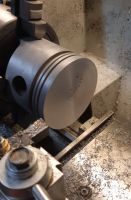 Disse toppene har en kant ytterst, der sylindrene ligger an, så vi må begynne med å frese bort den for å få bra "squish area", men vi må nok litt dypere. Må ha rundt 46cc i forbrenningskammeret for å treffe 8.5:1.