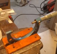 20201112_185539.jpg (51.14 KB. 800x389 - vist 580 ganger.) Før vi bruker for mye tid å penger på denne blokka, tenkte vi det var lurt å sjekke om den trenger linjeboring, så da fant vi frem et mikrometer i passe størrelse, og en "bore dial guage" for å måle lagerbukkene innvendig.