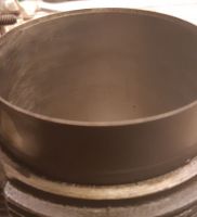 Jeg prøvde å file forsiktig på de delene som stakk ut men det var noen søkk som jeg ikke fikk bort, så da bestemte jeg meg for å spenne de opp i dreiebenken, og tok en tidel om gangen til de ble nesten borte: