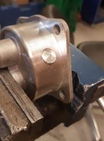 Jeg skal dreie o-ring spor i pumpehuset uansett, så da skal jeg "shave" av den lille delen av pluggen som stikker ut når pumpehuset skal inn i dreiebenken en tur allikevel.