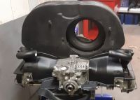 Så et bilde som viser innmaten på 3-4 siden, og 36-hk er jo ikke helt blottet for finner. Pluss at det er egne kammer til "muffinmagen" på det "nye", så i og med at jeg har blendet av varmeapparat-uttakene, så er jo det en blindgate på begge sider... (Når jeg tenker meg om så tror jeg at jeg har fjernet dette på et viftehus jeg brukte på oxyboxeren en gang i tiden; det var mye jobb og det har jeg ikke lyst å gjøre igjen...)