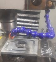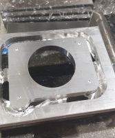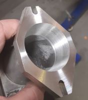 Så måtte vi lage en flens, og jeg fikk æren av å 3d-modellere basert på målene av den gamle flensen, og så tok vi en tur over til verkstedet til junior, hvor han fant frem en bit med 10mm tykk alu, og etter litt magisk trykking på tastaturet begynte flensen å dukke opp i stikka:
