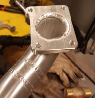 Og så kom eldstemann innom en tur, og da var jeg ikke sen om å be ham om å sveise på flensen, og det ble jo helt greit Glad