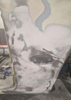 Jeg kikket litt mer på panseret, og etter at jeg hadde sveiset inn en bit, la jeg på litt sparkel: